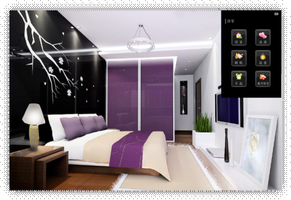 通过无线网络终端如手机平板电脑等触摸控制器可方便启动睡眠模式和起夜模式。 “睡眠”场景模式:当夜晚准备休息时,只需轻按触摸控制器上的一个按钮,则可同时实现主卧室、主卫生间的灯光全部关闭;“起夜”场景模式:当夜晚主人起夜时,只需一个按键,则开启客卧室背景光、客卧室卫生间的灯光,如客卧室的灯可以调光,那么可以以10%的亮度打开客卧室的灯光,同时打开卫生间的灯,方便夜间走路,而不影响家人休息。